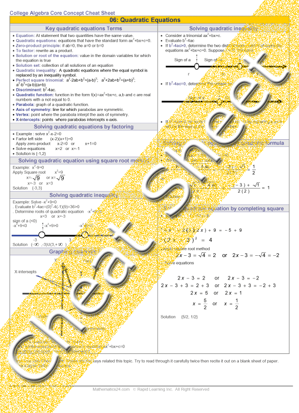 See all 24 lessons in College Algebra, including concept tutorials, problem drills and cheat sheets: Teach Yourself College Algebra Visually in 24 Hours